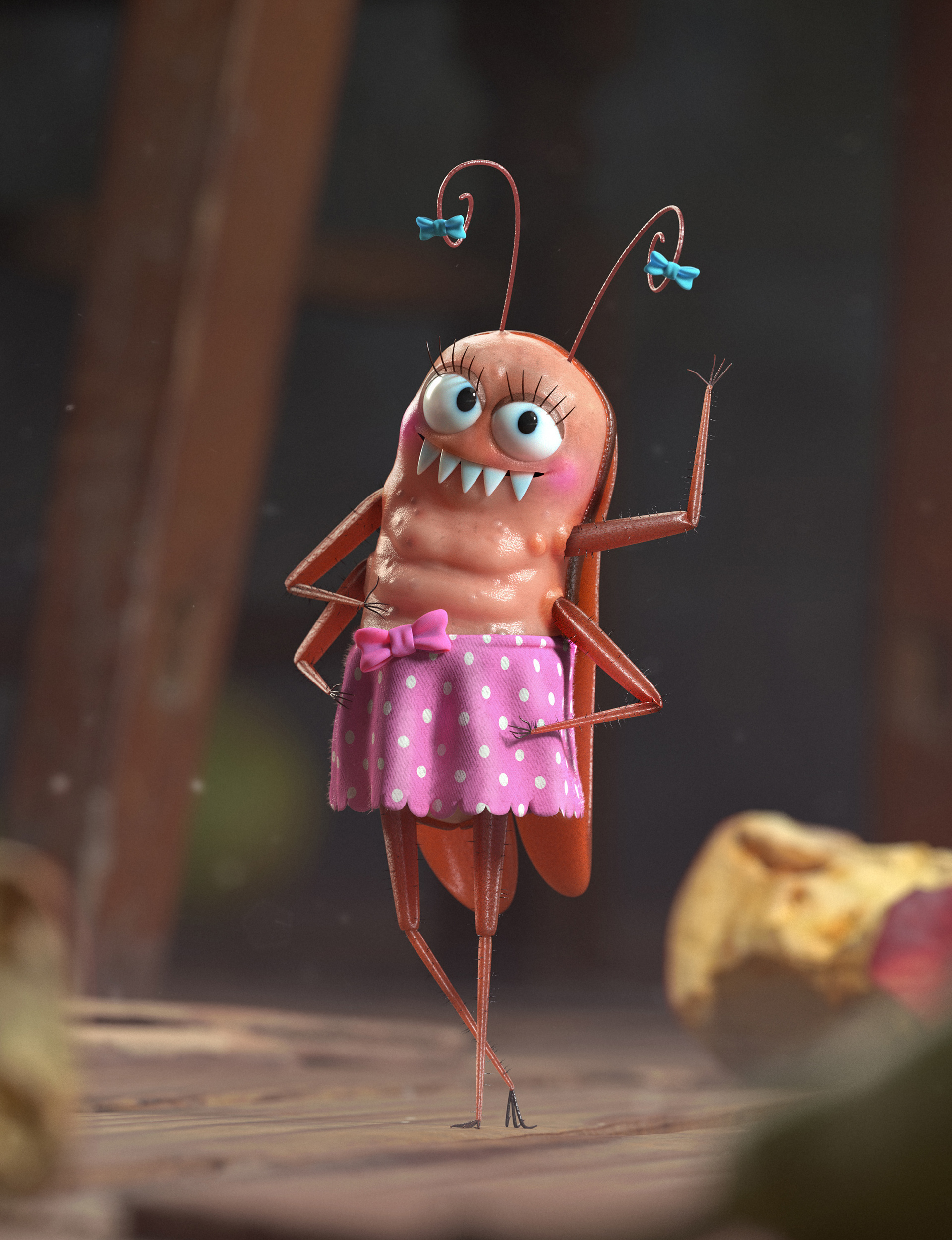 Last weekend after read a bedtime story for my daughter I finally decide to give it a go on doing a 3D version of this cute cockroach called Socorro. Character by Silvana Rando